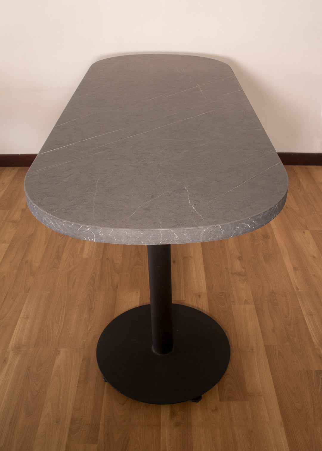 Mesa para interior de 8 puestos con base metálica en pintura electrostática negra y superficie en madecor tipomarmol negro.